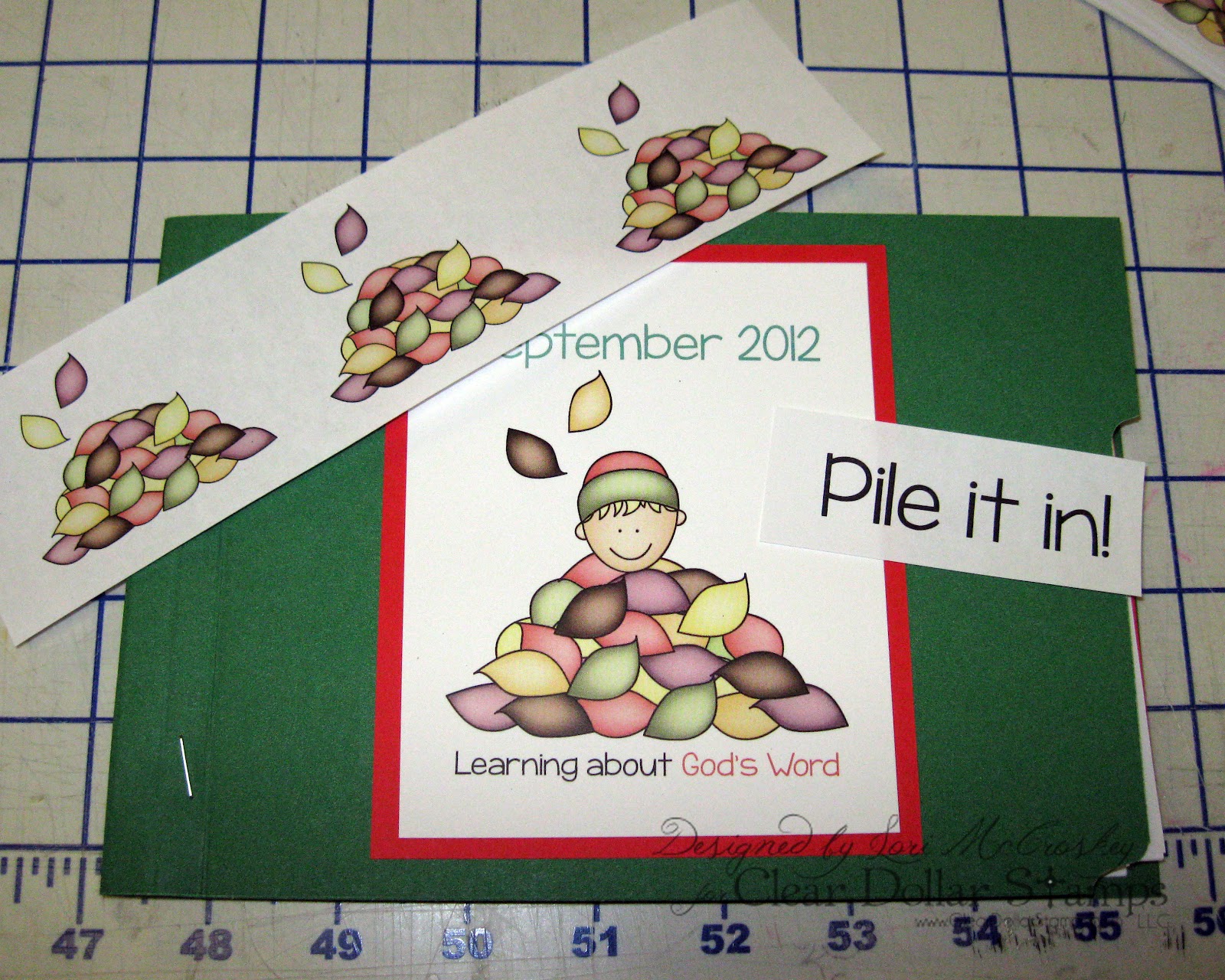 Next, I printed off some pages with Lisa's Piles of Fun kids to decorate the front of our folder.